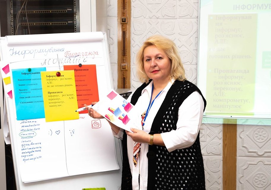 Тренінг «Ціннісні орієнтири модернізації сучасної вищої педагогічної освіти» був запропонований доцентом Оксаною Джус у другій групі і мав метою виокремити кращі здобутки української освіти, прищеплення кращого педагогічного досвіду зарубіжжя, адаптації його до національної освітньої системи. У другій половині дня у цій групі учасники обговорювали проблему розвитку критичного мислення як засобу протидії маніпуляцій і фейків, працювали над вирішенням проблемних навчальних ситуацій з доцентом Інною Червінською. Цікавими також виявилися завдання з розвитку медіаграмотності та медіакультури особистості в освітньому процесі.