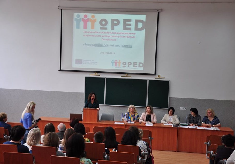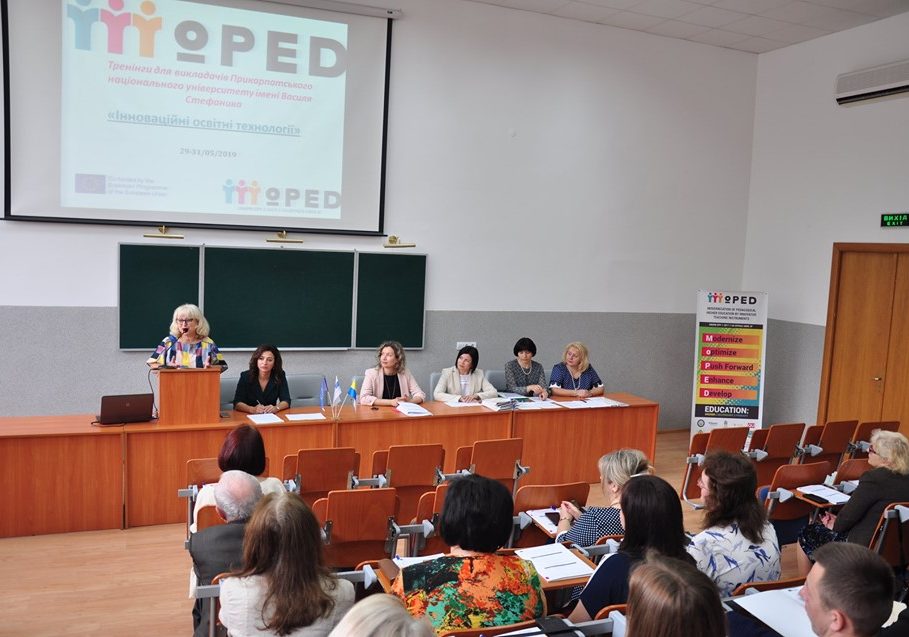 29 травня 2019 року у Прикарпатському національному університеті імені Василя Стефаника розпочалась серія навчальних тренінгів для викладачів з підвищення кваліфікації у рамках проекту програми ЄС Еразмус+ №586098-EPP-1-2017-1-UA-EPPKA2-CBHE-JP «Модернізація педагогічної вищої освіти з використанням інноваційних технологій викладання – MoPED», які будуть тривати упродовж 3-х днів. Навчання будуть здійснюватися за результатами стажувань академічної групи проекту в європейських університетах (Кіпрський університет, Університет Деусто, Краківська гірничо-металургійна академія).