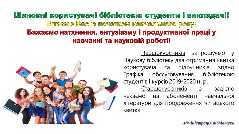 Графік обслуговування бібліотекою студентів І курсу 2019-2020 н.р.