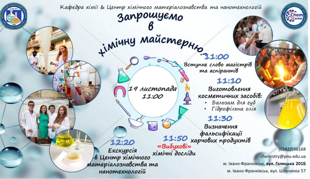 У Центрі хімічного матеріалознавства і нанотехнологій кафедри хімії відбувся профорієнтаційній захід «Хімічна майстерня»